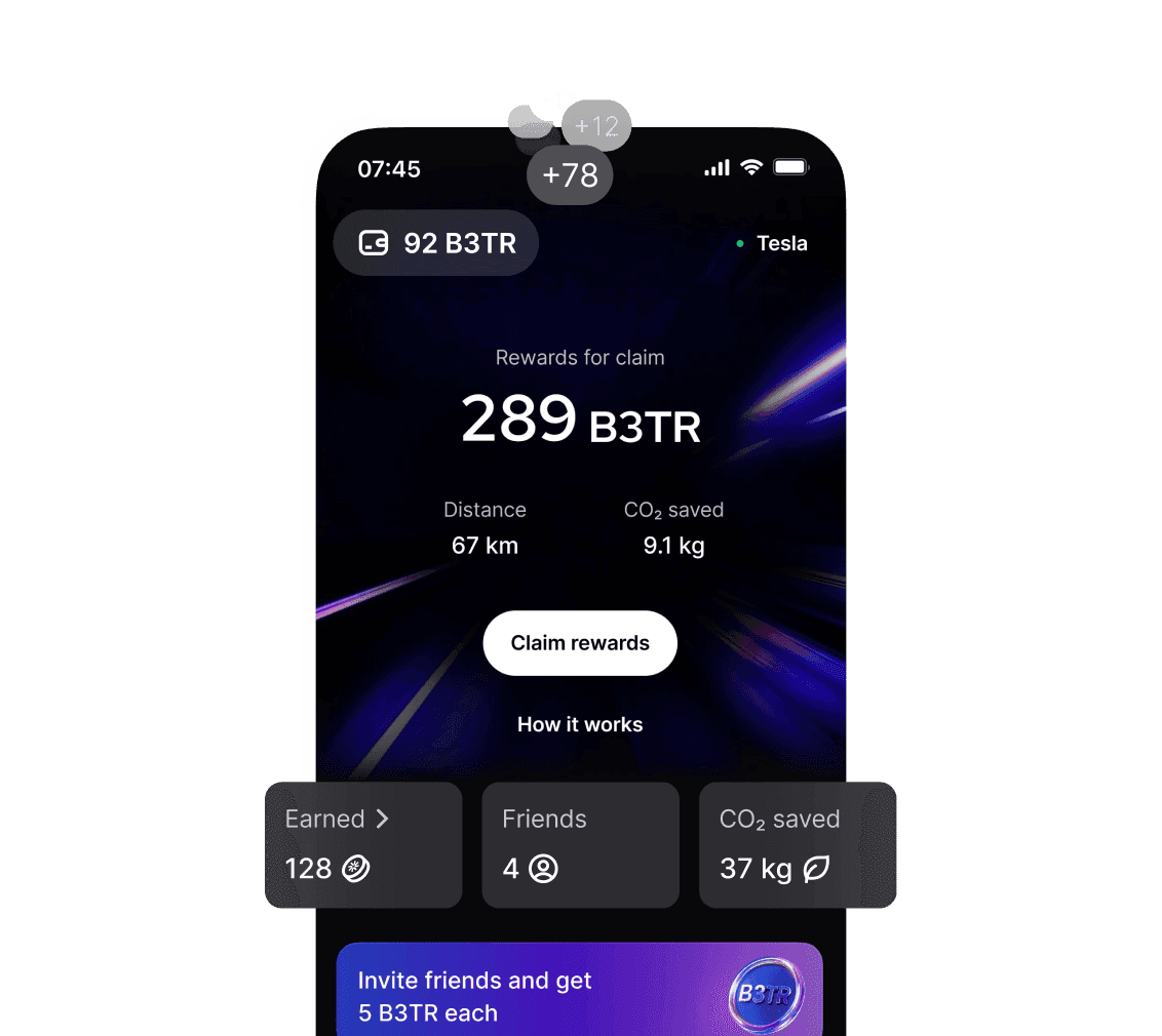 Go electric, save CO2 and claim B3TR rewards, VeBetter's ecosystem incentive token.